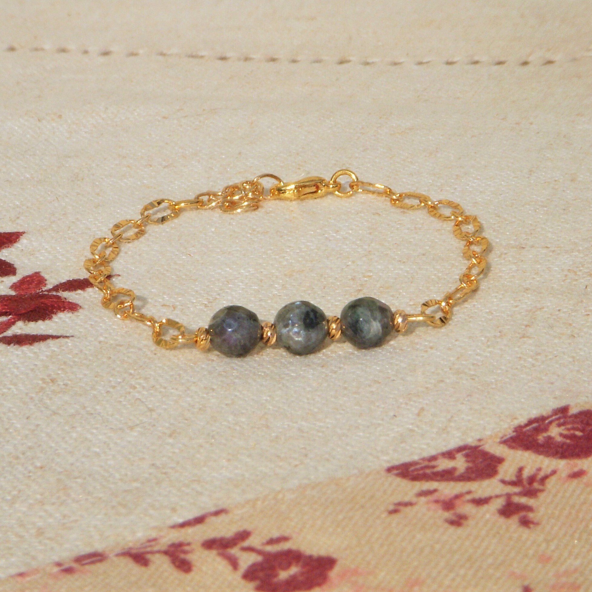 18k gold plated chiseled chain and faceted LABRADORITE natural stone bead for this fine and delicate women's bracelet, women's gift in natural stone, Christmas gift.